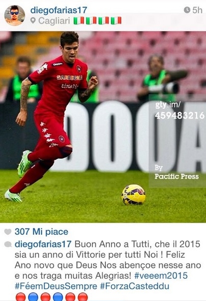 Ecco delle foto postate sui social da alcuni rossoblù. Quella di Diego Farias è accompagnata da un pensiero: “Buon anno a tutti, che il 2015 sia un anno di vittorie per tutti noi!”.