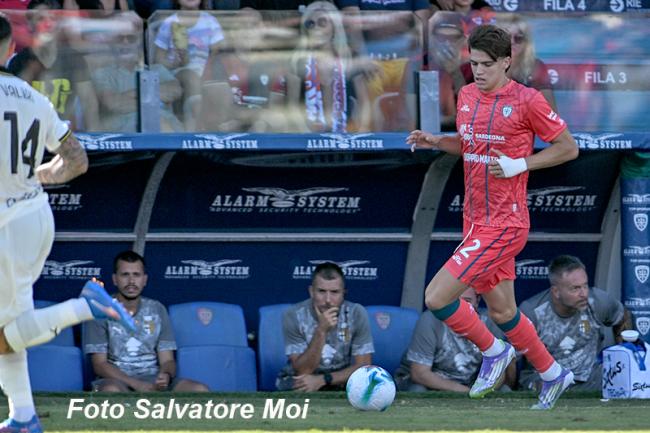 Al 4’Sottil scorre in velocità sulla fascia sinistra, smarcandosi dal controllo di Prati, e serve Tiago Gabriel che è pronto e supera Caprile. Il rossoblù tentano la reazione nei minuti successivi e sembrano vicini al pareggio in diverse occasioni: al 17’ in sequenza prima Esposito, che prende il palo su angolo di Prati, poi Belotti che si avventa sul pallone ma sbaglia la mira. Al 19’ è Adopo a rendersi pericoloso ma Falcone riesce a bloccare il tentativo. Un minuto dopo viene ammonito Tiago Gabriel per comportamento antisportivo. Al 22’, ancora Falcone, si oppone a una conclusione di Deiola. Quattro minuti dopo viene ammonito Coulibaly per fallo su Belotti. Al 33’ arriva il gol del pareggio proprio del numero 19 rossoblù: Palestra riceve palla da Adopo, corre sulla fascia destra e si accentra, serve il “Gallo” – posizionato esattamente al centro dell’area di rigore – che non deve fare altro che mettere alle spalle di Falcone. Le due squadre non si risparmiano e cercano entrambe il secondo gol, in particolare i sardi sembrano galvanizzati dal gol di Belotti e attaccano con assiduità l’area leccese. Al 43’ Folorunsho dialoga con Esposito che, dall’esterno sinistro dell’area, tenta un tiro che colpisce il secondo palo della porta difesa da Falcone. Il signor concede un minuto di recupero e, al 46’, Caprile salva il tuffo, di pugno sulla conclusione di un giocatore del Lecce. Poco dopo viene ammonito lo stesso Esposito.
