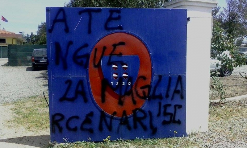 La contestazione andata in scena ad Asseminello non ha risparmiato neppure il cancello d’ingresso del Centro Sportivo. Una scritta netta e dal contenuto forte.