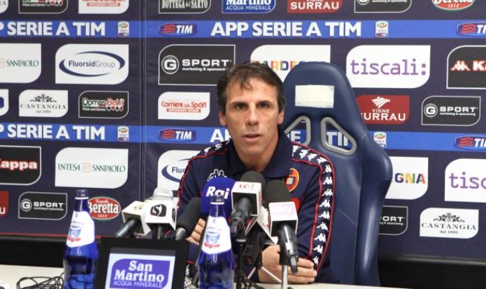 Il tecnico rossoblù Gianfranco Zola , scuro in volto, si presenta in sala stampa accompagnato da Stefano Filucchi. Queste le sue parole: